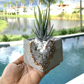 Modern inspired geode resin art is perfect if you're looking for an original piece of luxury art designed specifically for your home. I will work with you on sizing and colors to help bring your vision to life. For optimum results, I require a photo of the area the art is to be displayed so that I may have a clear vision on the space you're trying to fill. My commissions canvases start at around $400 US + shipping. My commission succulent planters start at $100.