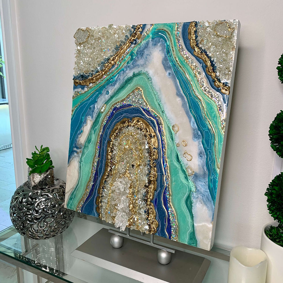 Welcome to Opulux Designs, your premier destination for exquisite handmade geode-inspired resin art pieces and customizable home decor. Each of our pieces are the only one in existence, carefully crafted by just ONE skilled artisan, making every item truly one-of-a-kind.